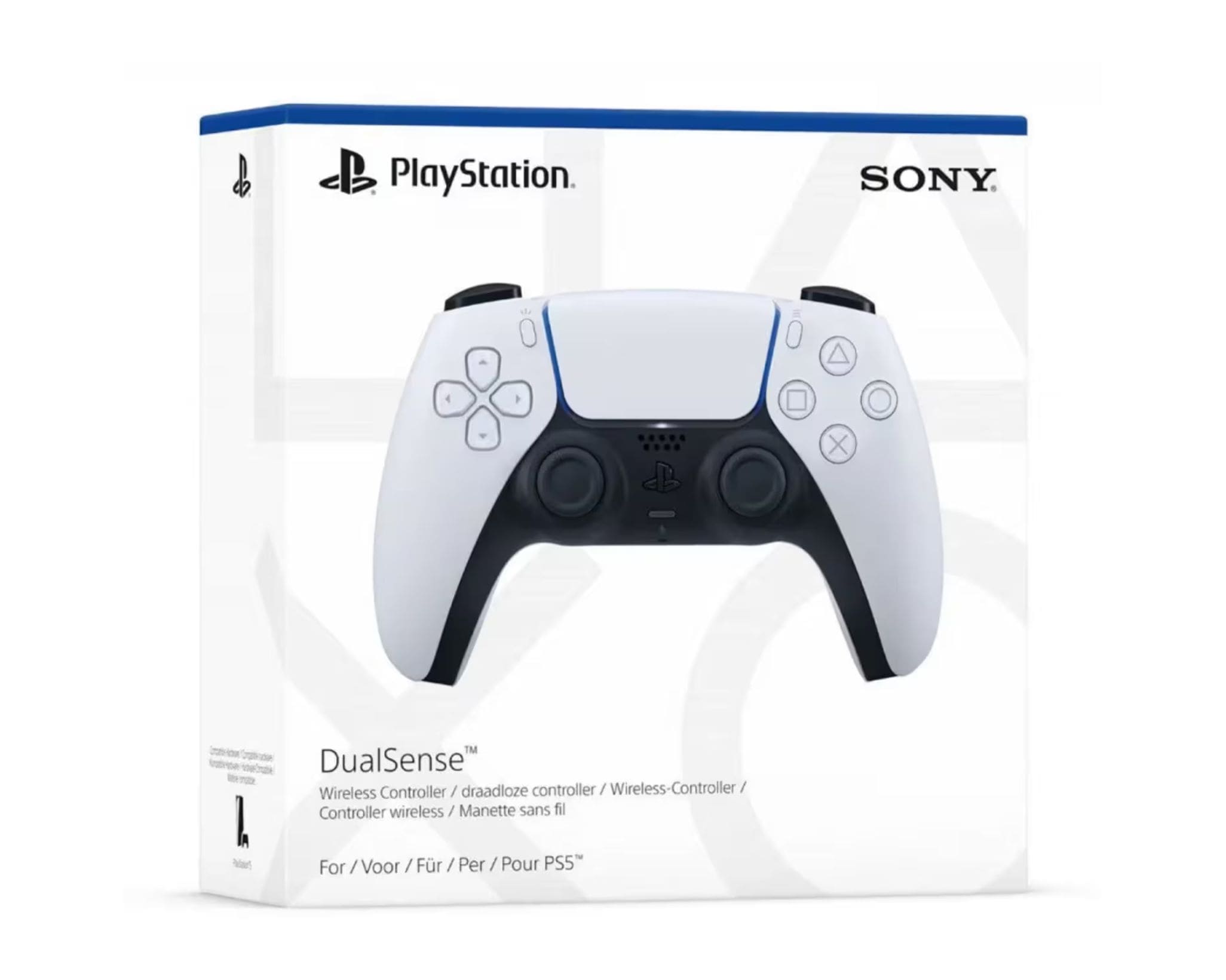 Controles: panel táctil multitáctil, botones de opción, crear y PS, cruceta, sticks analógicos con clic presionable, altavoz y micrófono integrados.